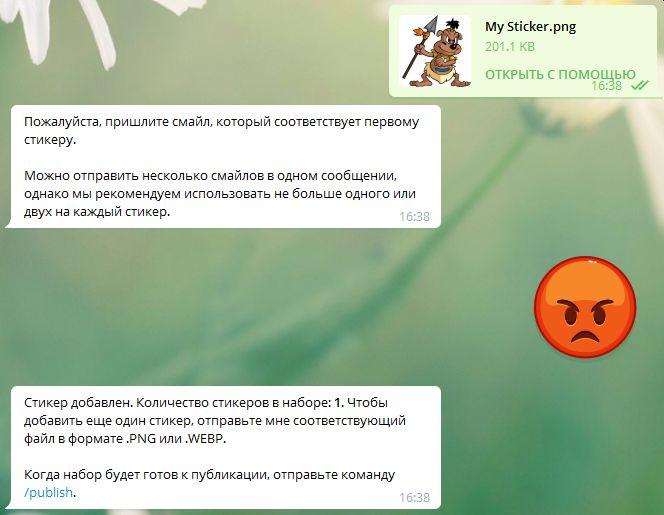Далее нужно нарисовать стикер, а когда он будет готов – загрузить посредством уже упомянутого нами выше бота. Чтобы это сделать, нужно следовать дальнейшим рекомендациям: