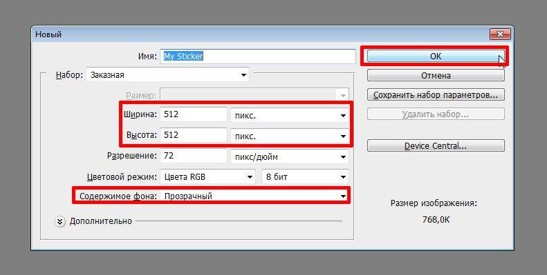 Опишем процесс создания холста для стикеров на примере «Фотошоп»: